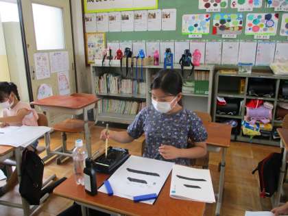 「とん」「すう」「ぴた」と,文字を書く時の力の筆の動かし方にも意識をしました。