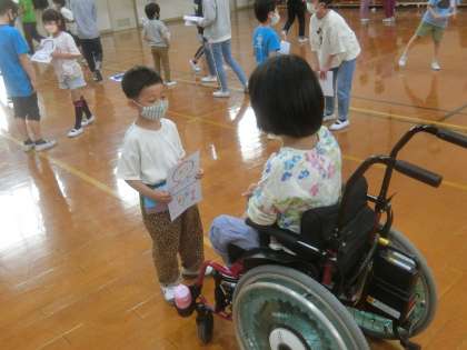 なかよしいっぱいだいさくせんの第一歩として,今日は6年生となかよしになりました。自己紹介をして,好きなものを教えあいました。名前がおぼえられるように,顔を見ながら話を聞いていました。