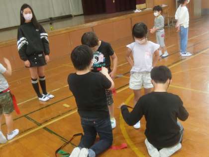 そのあとは,手つなぎ鬼やしっぽとりゲーム,白黒ゲームをしました。6年生に教えてもらいながら,楽しい時間を過ごしました。