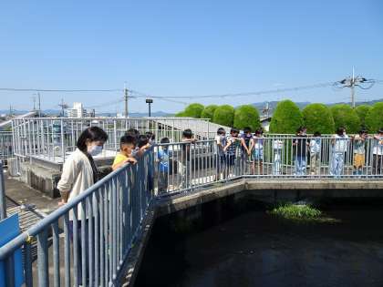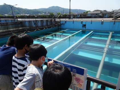 松ヶ崎浄水場に社会見学に行きました。琵琶湖から来た水が少しずつきれいになっていく様子を見ることができました。