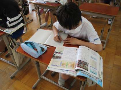 市や県,国が復旧,復興むけてどのような取り組みをしたのかを調べている様子です。