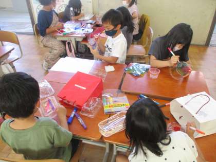 セロハンで色あそびをしたあとに,「ひかりのプレゼント」の学習をしました。持ってきたプラスチックの材料に色をつけました。