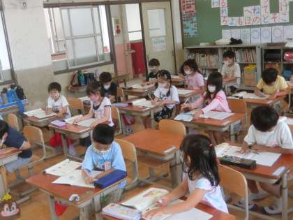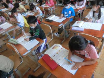 今日から国語のじかんに,ノートを使い始めました。はじめてのノートを使う学習で,とてもうれしそうに,書いていました。下敷きも,忘れることなく引いていました。