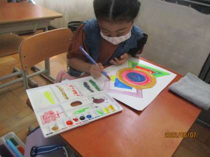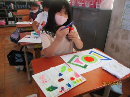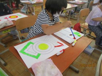 前回よりレベルアップして筆の使い方をかんがえながら色を塗りました。練習なのではみ出してしまうこともありましたが,いろいろな色を使って楽しく色塗りができました。