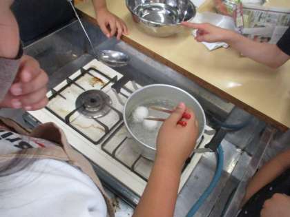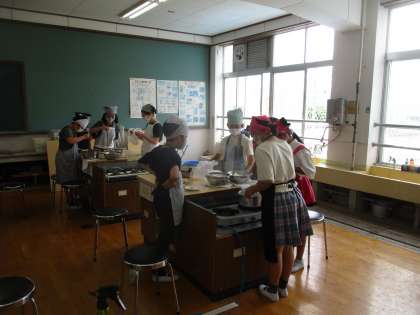 家庭科の学習で調理実習を行いました。今日は,ゆでたまごとゆで野菜のサラダを作りました。前回よりも手際よく,盛り付けもきれいにできていました。ドレッシングも自分たちで作ったのですが,「おいしい!」という声がたくさん聞けました。上手に作ることができたようです。