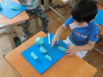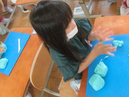 「ごちそうパーティー」をひらきました。子どもたちの思うごちそうは,ステーキが1番人気でした。そして,ケーキも人気です。ラーメンやたまごやき,フルーツなど自分が好きな食べ物を作った子もいます。思い思いのごちそうをつくりました。