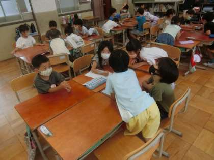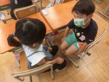 また,ペアでは,しりとりの練習をしました。今後も,知っている言葉を増やすためにもしりとりをする時間をとっていきます。