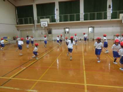 からだほぐしの運動と,ころがしドッチをしました。バランスをとったり,ケンケンで進んだりしました。