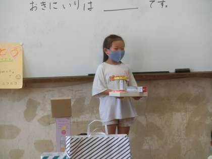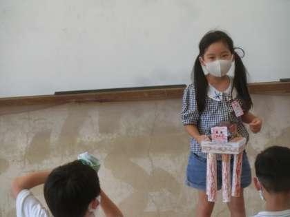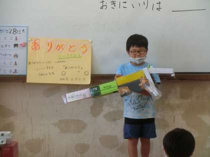 今日は,箱で作ったものをみんなの前で,発表しました。お気に入りのところもいうことができました。