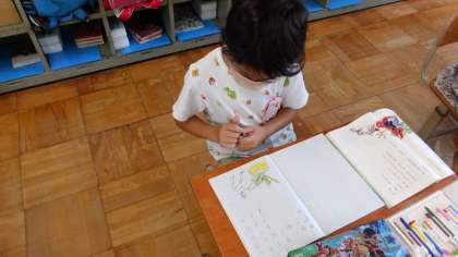 今日は,お気に入りの場面をノートに描きました。