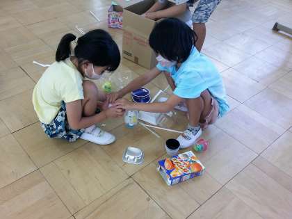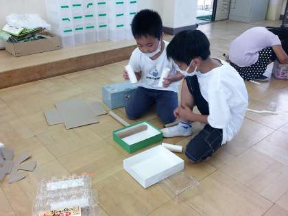 遊んでみると、「もっとこんな材料があったらいいな。」や、「組み合わせたらどうなるだろう。」などいろいろと気づくことがあったようです。
