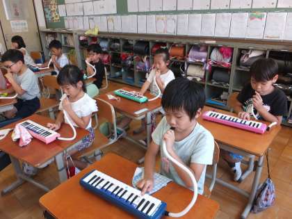 今日の音楽も,鍵盤ハーモニカを使いました。忘れ物をすることなく,全員でそろって練習することができました。みんなでリズムに合わせて演奏できたときは,拍手がおこりました。