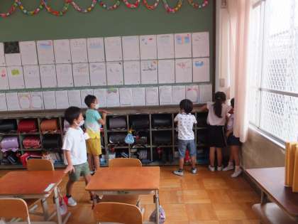 「おおきさくらべ」の学習がはじまりました。教室内のさまざまな大きさのものを測りました。想像以上に大きかったようで,驚いていました。