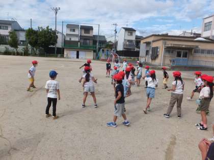今日からみんな遊びが始まりました。第1回目は,ころがしドッチです。全員が楽しめるようにボールを譲り合いながらころがしていました。とても楽しかったようで,来週のみんな遊びの時間が待ちきれないようでした。