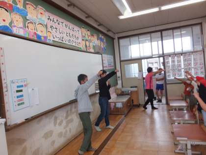高学年の応援団が教室に来て,応援の仕方を教えてくれました。元気いっぱい声をだして練習しました。本番の応援合戦が楽しみです。