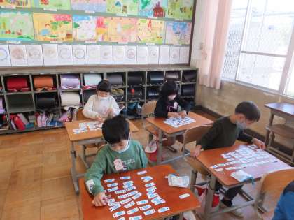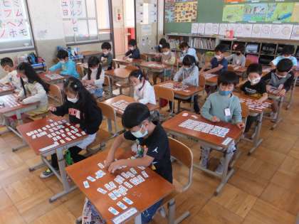 たしざん(2)の計算カードを使った学習がはじまりました。これまでのたしざん(1)よりも大きな数の答えがでるので,苦戦する子がいました。今日からは宿題でも唱えます。すらすら言えるように,がんばっていきましょう。