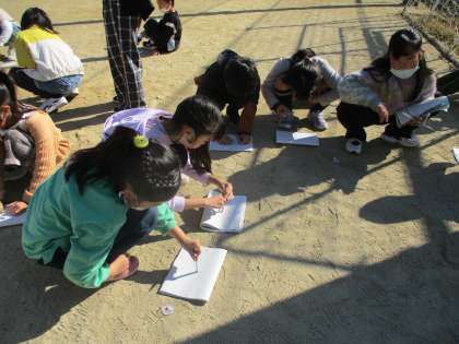 時間がたつと、かげと太陽の位置はどのように変わっていくのかを調べています。