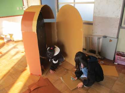 学芸会で使う大道具を作っている様子です。