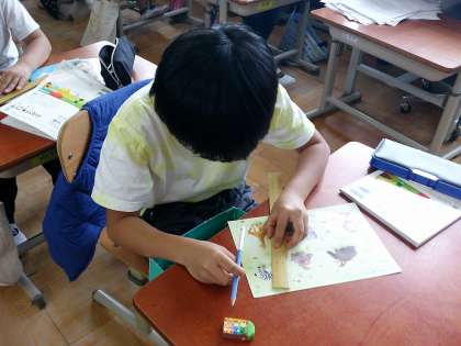 「三角形と四角形」の学習を始めました。今日は、動物の絵のカードを使って、動物を直線で囲むことをしました。ものさしの使い方の復習をしたあと、直線を引きました。以前より、直線を引くのが上手になっていました。動物を囲んだ形をもとに、その特徴について次の時間に考えていきます。