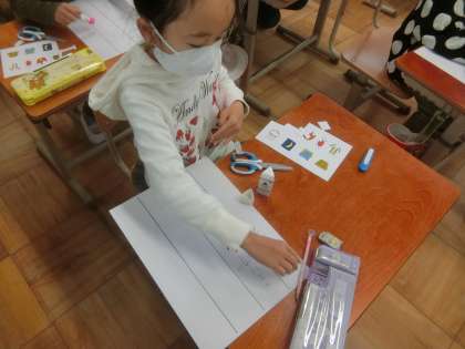 漢字のなりたちの学習をしたあと,漢字を絵で表してものを使いクイズを作りました。工夫を凝らしたクイズで楽しく活動できました。