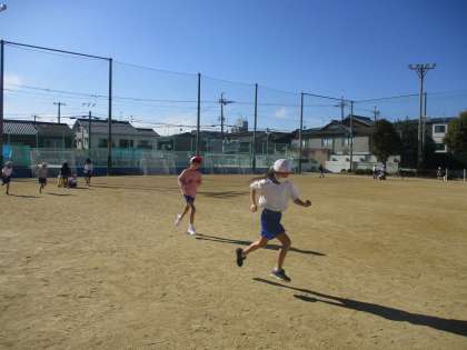 体育では、ゆっくりペース走となわとびをしました。