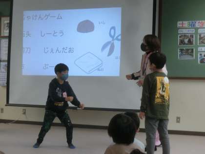 ともだちの日の取り組みとして,中国にルーツをもつ先生に中国語でのあいさつや太極拳を教えてもらいました。中国語で元気いっぱい挨拶をしたり,じゃんけんをしたりと楽しい時間を過ごしました。教室にもどってからも,中国のことに興味をもち,「中国に行ってみたい。」と話していました。