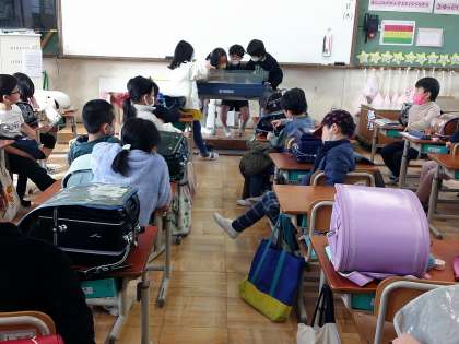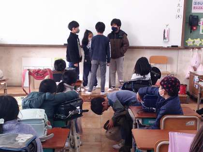 音楽係とおわらい係が発表をしてくれました。友だちとたくさん相談して仲良く発表してくれました。