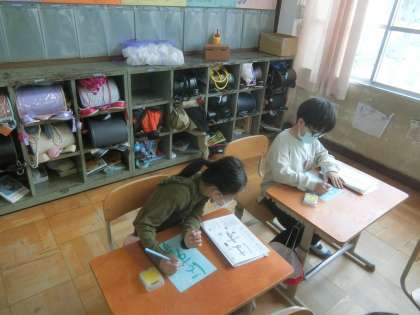 今日の書写では,初めての水書をしました。筆で字を書く経験が無い子がほとんどだったので,苦戦しながらもがんばりました。筆を使って,字が上手に書けると大喜びでした。