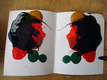 4年1組の教室で作品作りをしました。マーブリングやデカルコマニーを体験しました。どんな絵が完成するのか完成するまで分からないのが、楽しいポイントです。完成する前のワクワクする様子がとても印象的でした。