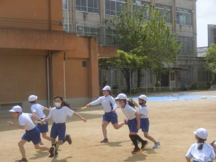 4年生の体育ではリレーに取り組んでいます。バトンパスがうまくいかず,苦戦するチームが多くあります。今後バトンパスとコーナーの曲がり方を練習していきます。