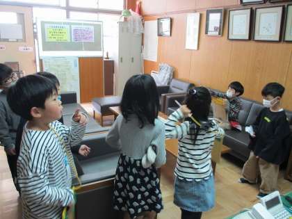 そのあと、1・2年生は学校探検をしました。2年生は1年生を上手にリードしながら各教室を案内していました。校長室の中にも入ってもらいました。子どもたちは校長室の中にあるものに興味津々です。中でも、歴代校長先生の写真にはほとんどの子たちが目を向けていました。朱六小が90年も前からあったということに、驚いている子たちも多かったです。