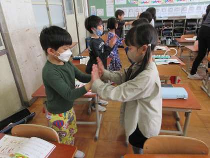 最後には、自分で考えた3拍子の振りを