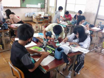 理科の学習で、めだかのたまごや稚魚の観察をしました。顕微鏡や虫眼鏡を使って、観察をしました。