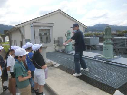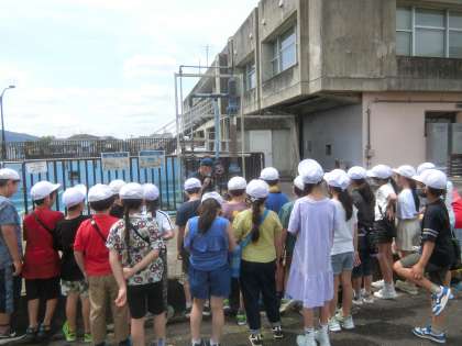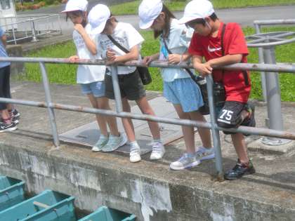 2枚目は薬品沈殿池です。プレートをジグザグに配置することでフロックと呼ばれる水中のごみを取り除きやすくしていることを聞き,驚きの声をあげていました。学校に戻ってからも,この技術のすごさについて話していました。