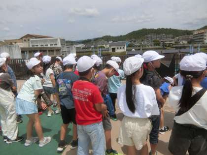 1枚目は貯水池がある妙法の「妙」の山を見ています。事前の学習で「妙」の山を見るのを楽しみにしていたので,やっと見れたと喜んでいました。