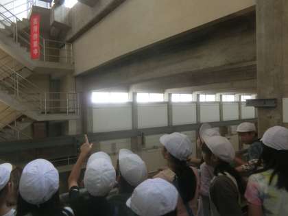 2枚目は送水ポンプです。きれいになった水を貯水池までおくります。とても広い地下室でこの中を水が流れるのかと実感できました。