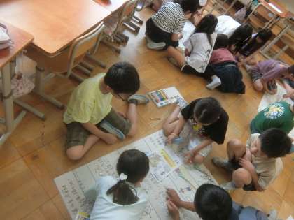 先日浄水場に見学に行った4年生は,水の大切さを全校に伝えたいと,ポスター作りをしています。「1日の使用量」「浄水場の働き」「ダムの働き」「わたしたちにできる節水」をテーマにまとめました。