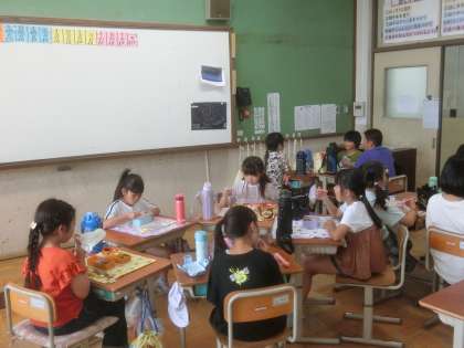 今日は教室でお弁当を食べてから,生き方探究館に行きました。大好きなおかずがいっぱい入ったお弁当を,とてもうれしそうに食べていました。