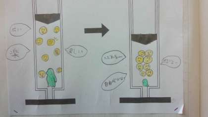 そのあと,空気に力を加えるとどんなことが起こっているのか,紙に書いて表しました。