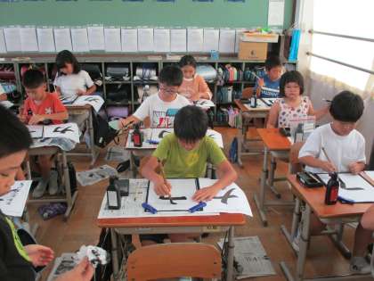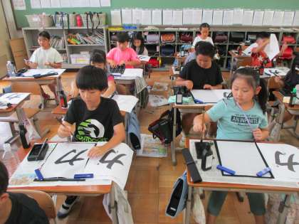 「おれ」と「はらい」の筆使いに気を付けて学習しました。