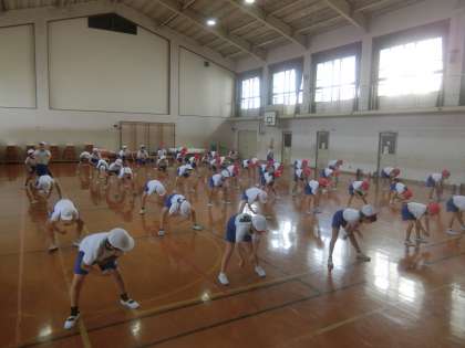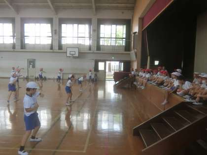 ソーラン節がずいぶん上手になりました。手をピシッと伸ばしたり、足ぶみのタイミングをそろえたりと、細かい動きもそろってきました。