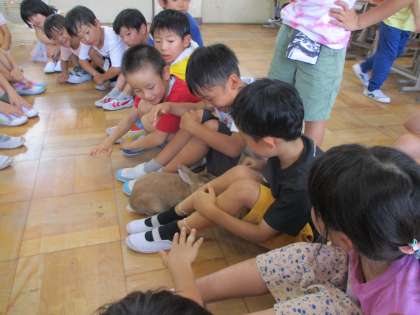 学校で飼っているうさぎのももちゃんに教室に来てもらいました。