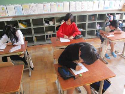 5・6年生の企画委員が全校児童が楽しめる企画を考え準備をしている様子です。