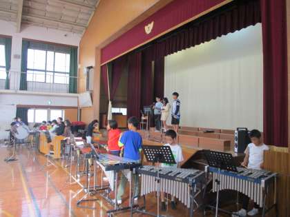学習発表会にむけて合奏の練習をしている様子です。