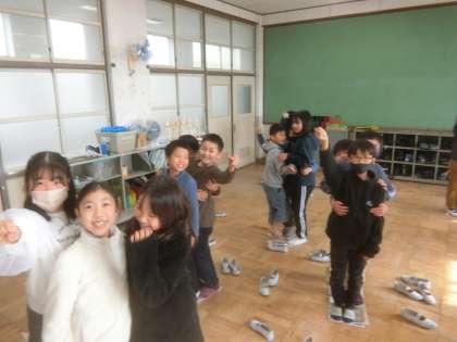 どんどん小さくなる新聞に、大盛り上がりの休み時間でした。