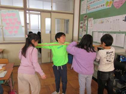 グループで協力しながら、自分の長さは何cmか、結果を聞くのを楽しみに待つ様子が見られました。