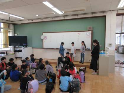 4月12日(金)今年度初めての町別児童集会がありました。各町が8つの教室に集まりブロック長、副ブロック長が司会や書記をして進めました。