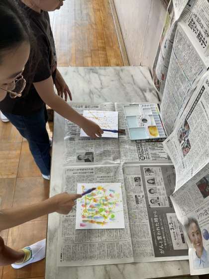 図画工作の学習では、「喜怒哀楽」の4つの気持ちを絵の具を使って表現しました。いろいろな技法を使ったり、自分で色を選んだりして、気持ちを表すことができました。4つのもようを並べるのが楽しみですね。