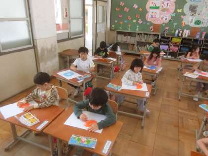 今日の図工は「わたしのおひさま」というテーマでかきました。にこにこわらっているおひさまをかきました。自分だけのおひさまは自分のすきな色でかきました。にっこりかわいいおひさまがたくさんできました。