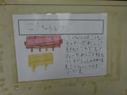 学校探検で1年生を案内する2年生。準備を着々と進めています。去年、自分たちが学校探検に案内してもらったことを思い出しながら、一生懸命に準備する姿は、頼もしい限りです。校長室にも案内板を貼りに来てくれました。学校探検を1年生は楽しみにしています。よろしくお願いしますね!